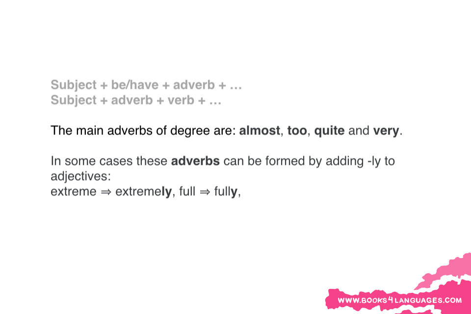 Adverb Of Degree Examples Sentences - Welcome To You All Introduction Md Fazlurrahman Class Xi Lecturer In English Subject English Gopalpur Adarsha Mohila Degree College Time 45 Minutes Ppt Download / An adverb is a modifier that tells us how, when, where, how often, or how much.. This lesson defines unreal conditional sentences as a subtype of conditional sentences and provides examples and identification practice. The meaning of adverb is a word that describes a verb, an adjective, another adverb, or a sentence and that is often used to show time, manner, place, or degree. 18.08.2018 · an adverb is a part of speech (or word class) that's primarily used to modify a verb, adjective, or other adverbs and can additionally modify prepositional phrases, subordinate clauses, and complete sentences.put another way, adverbs are content words that provide information about how, when, or where something happens. Adverbs are also called intensifiers because they intensify the … This page has lots of examples of the different types of adverbs and two interactive tests.